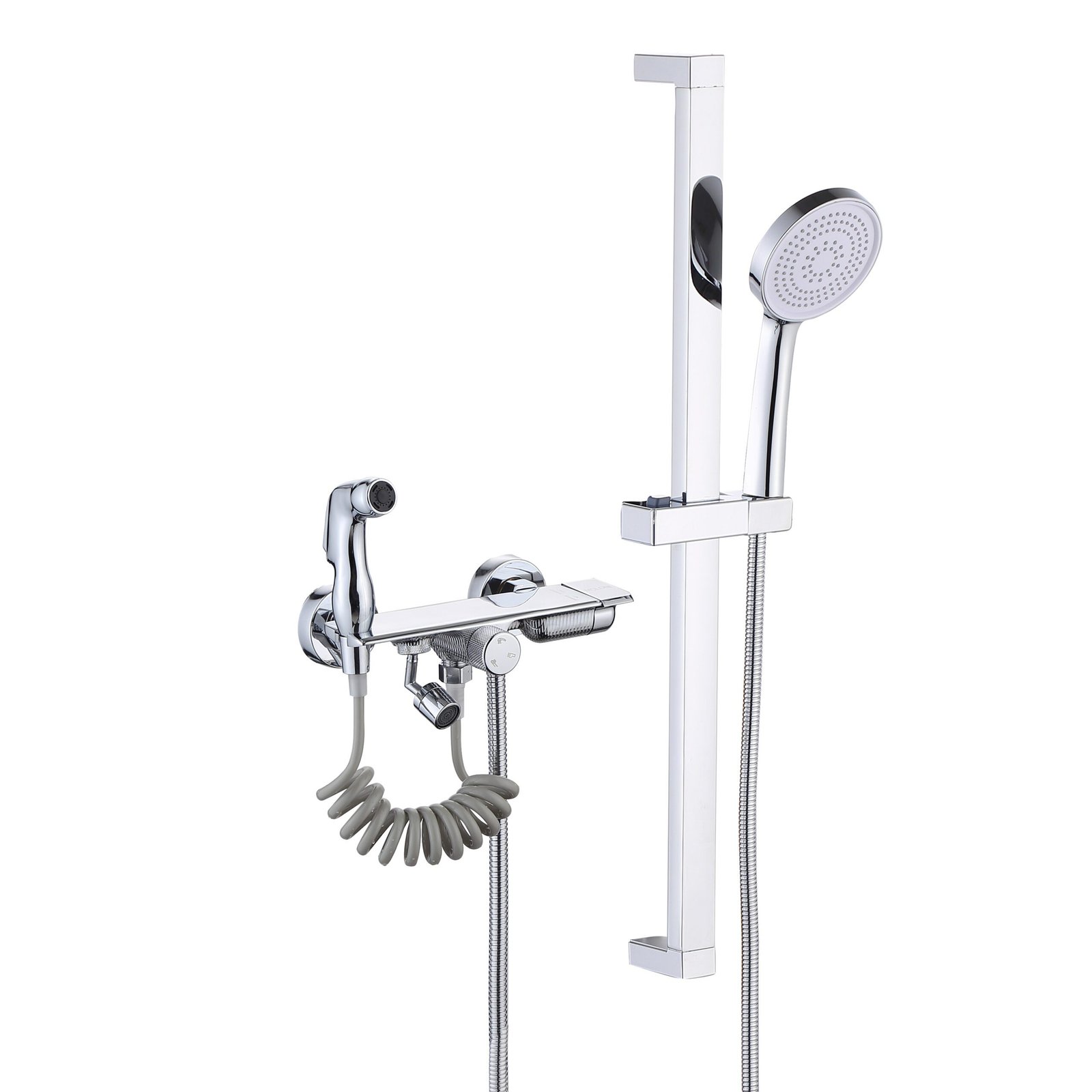 Top&Hand Showerhead, Hose, Showerhead Holder, Trims, Threaded Elbows, Spray Gun.