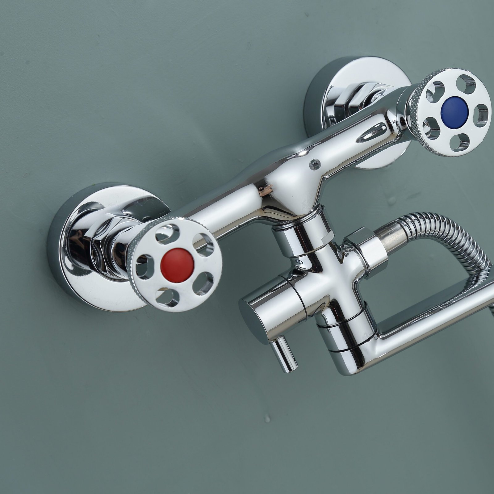 - Dual spout configuration for separate hot and cold water flow